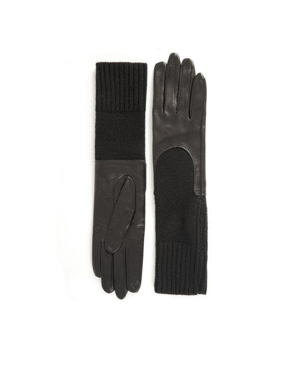 Mănuși feminine din piele neagră, finisate cu o manșetă elegantă din lână pură.