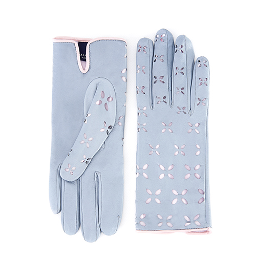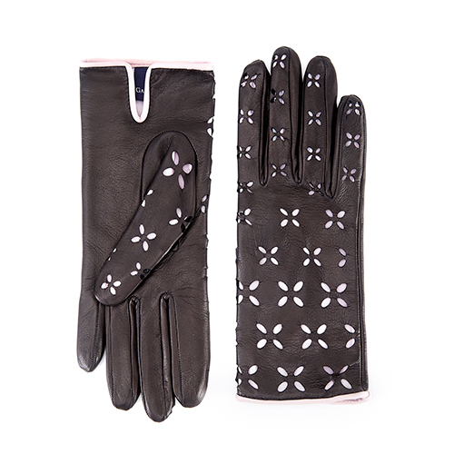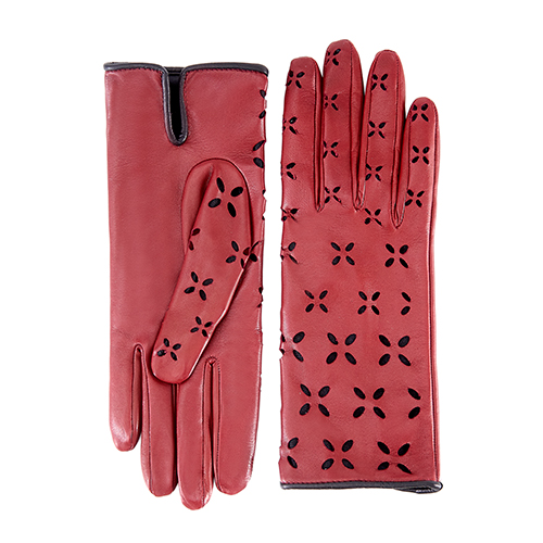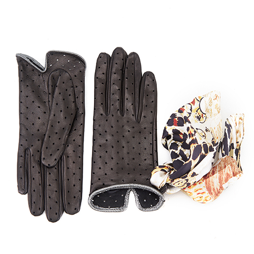Mănuși de damă necăptușite din piele nappa, cu detaliu perforat cu buline
